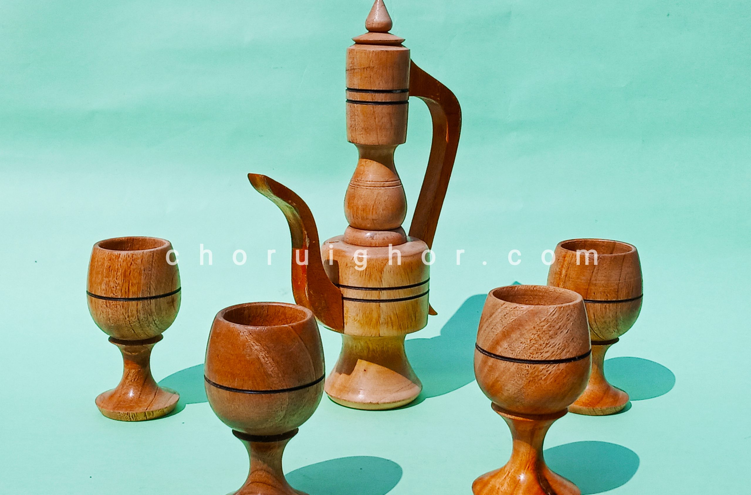 কাঠের শরাবদানী (বড়) একটি জগ চারটি গ্লাস জগের উচ্চতাঃ৯ ইঞ্চি প্রায় গ্লাসের উচ্চতাঃ ৩.৫ ইঞ্চি প্রায় মূল্যঃ ৪০০ টাকা