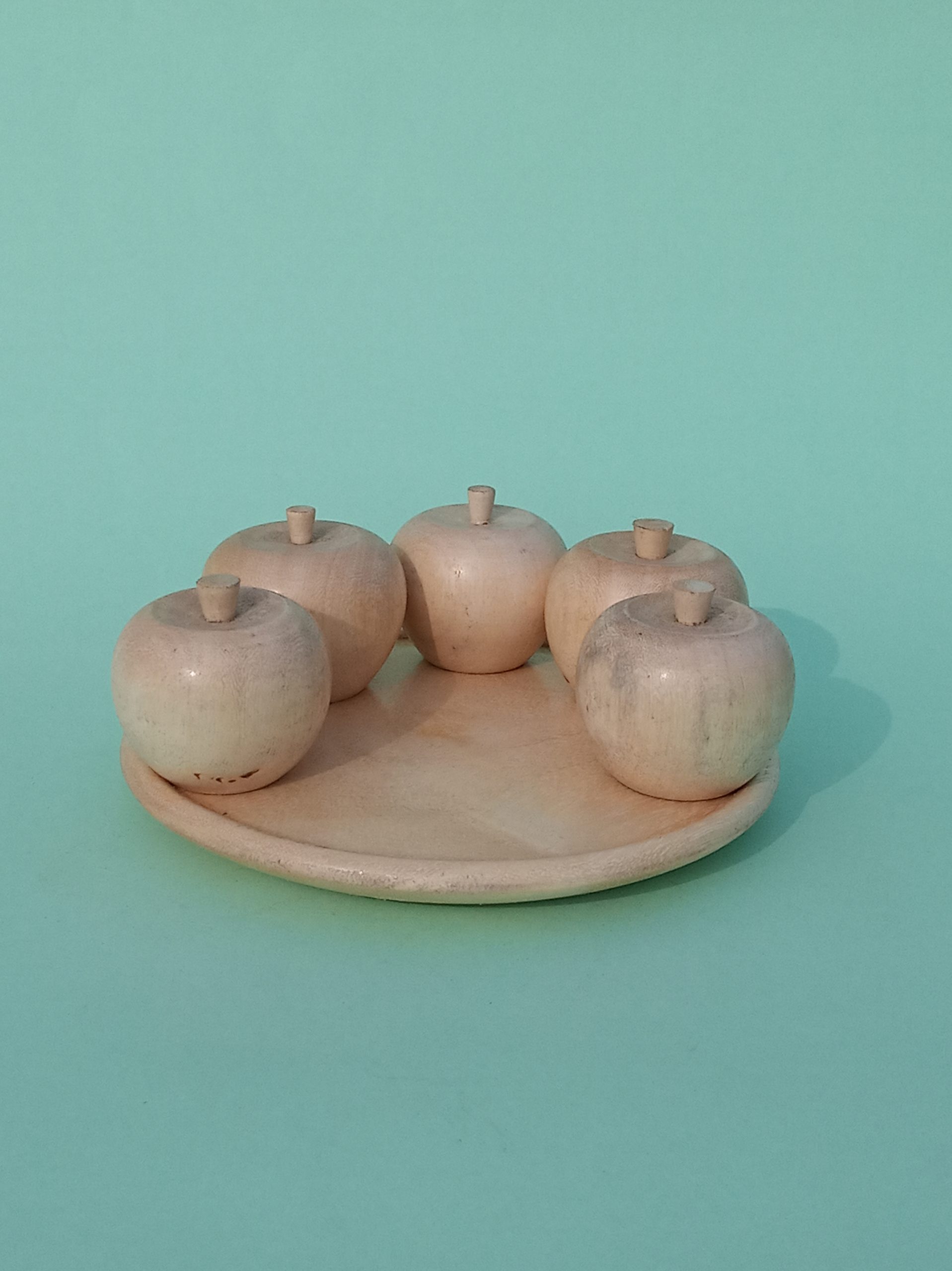 এক সেটে পাচটি কাঠের আপেল, একটি বাটি থাকবে